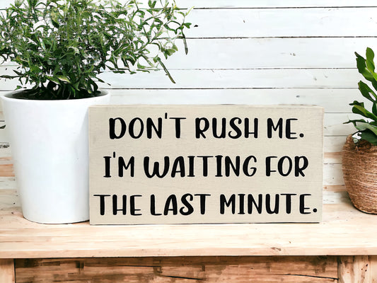 Don't Rush Me - Funny Rustic Wood Shelf Sitter