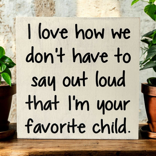 Favorite Child - Funny Rustic Wood White Sign
