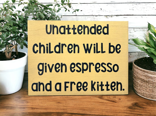 Unattended Children - Funny Rustic Wood Sign