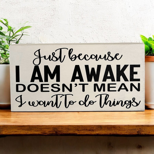 Just Because I’m Awake…Funny Everyday Decor Rustic Wood Sign