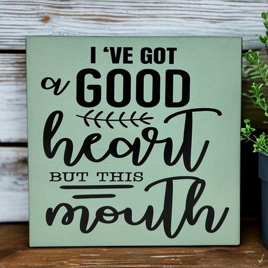 I've Got a Good Heart But This Mouth- Rustic Funny Wood Sign