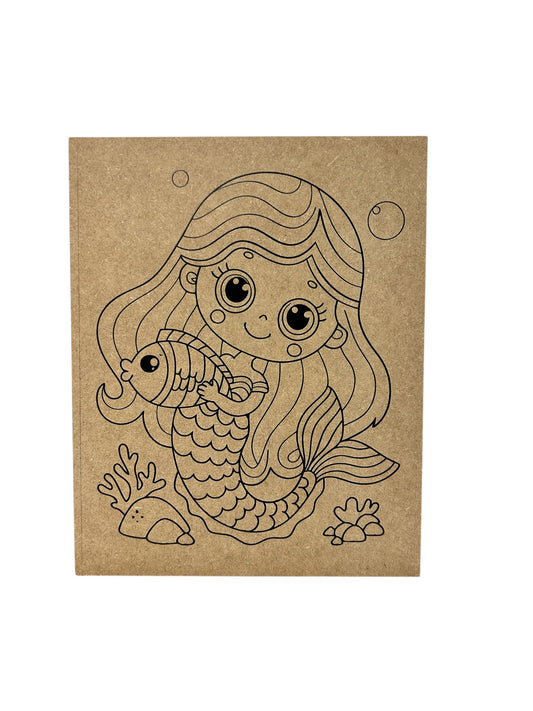 DIY Wood Coloring Book Page - Mermaid Holding Fish
