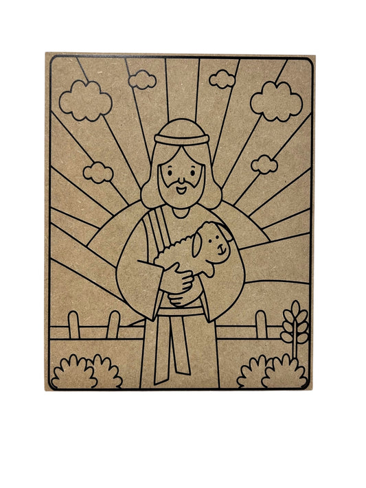 DIY Wood Coloring Book Page - Jesus Holding Lamb