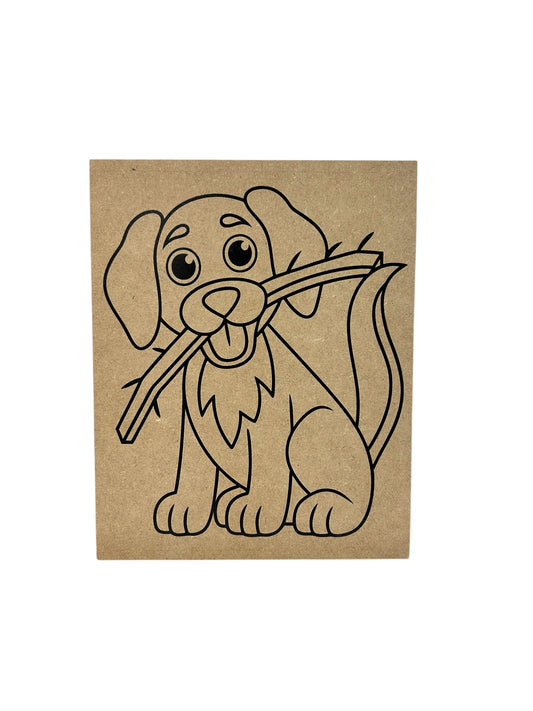 DIY Wood Coloring Book Page - Dog Holding Stick