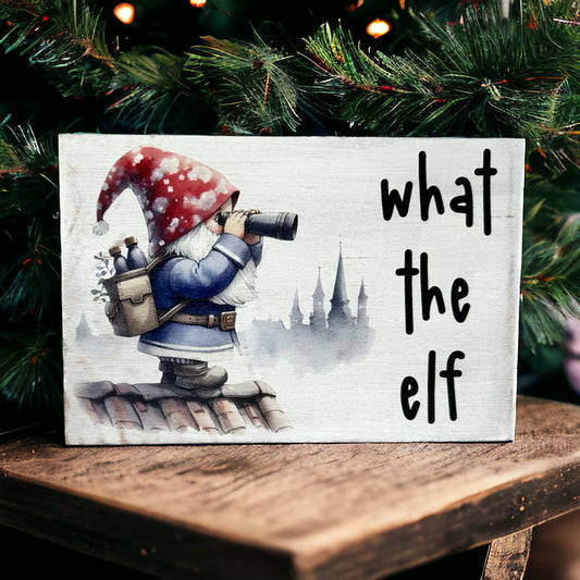 What The Elf - Funny Rustic Wood Christmas Sign