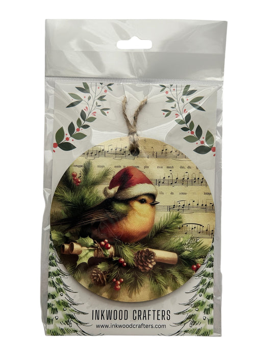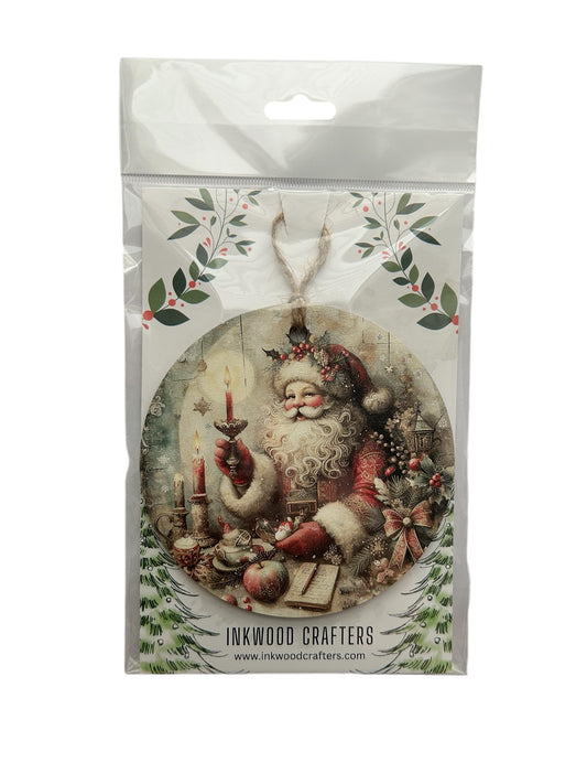 Vintage Santa with Butterfly - Wood Christmas Ornament
