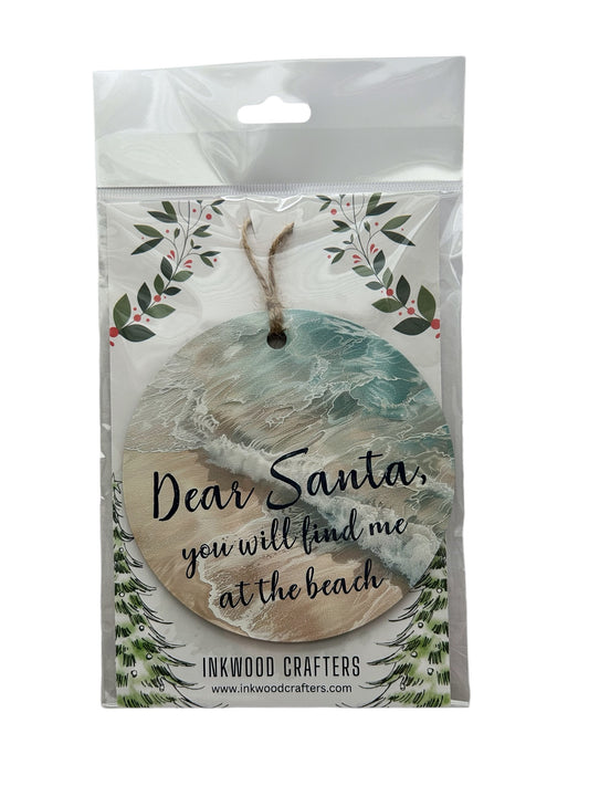 Dear Santa, You Will Find Me at the Beach. Wood Beach Christmas Ornament