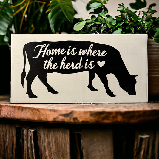 Home is Where the Herd is - Farmhouse Rustic Wood Sign