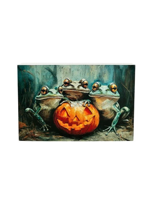 Frog Trio on Pumpkin - Autumn/Fall Decor Rustic Wood Sign