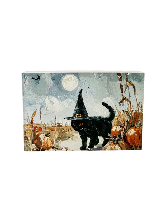 Black Cat Witch Painting- Autumn/Fall Decor Rustic Wood Sign