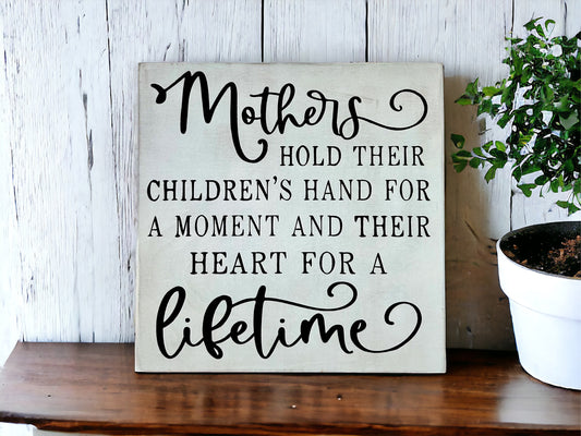 Mothers Hold Their Children’s Hand - Rustic Wood Sign
