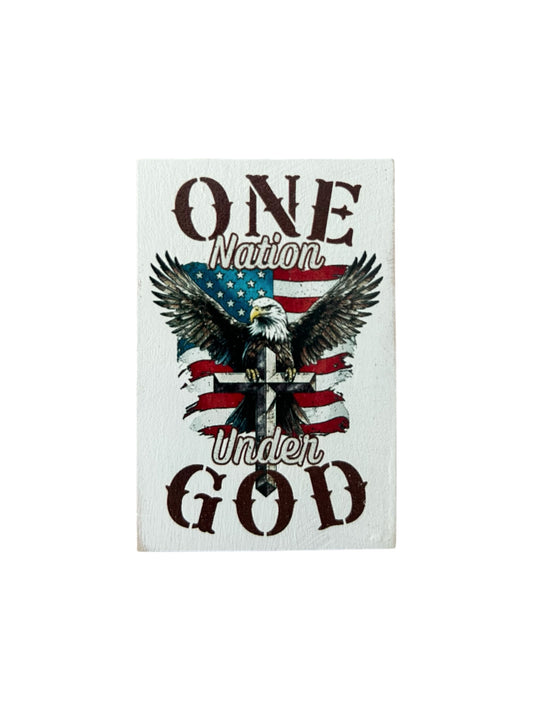 One Nation Under God - Patriotic Home Décor Wood Magnet
