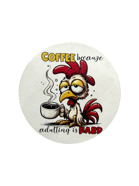 COFFEE Because Adulting is Hard - Funny Wood Magnet