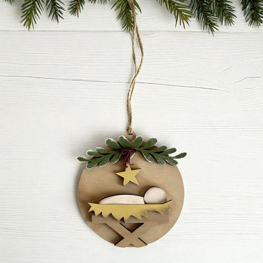 Baby Jesus in Manger - Layered Wood Christmas Ornament