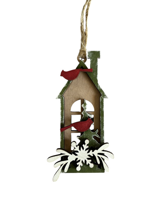 Folk Art Christmas House -Vintage Style Wood Ornament