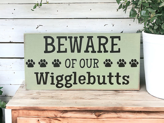 Beware of Our Wigglebutts - Funny Pet Decor Wood Sign