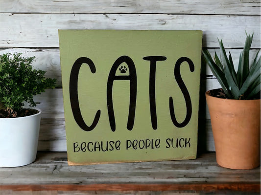 Cats Because People Suck - Rustic Wood Shelf Sitter