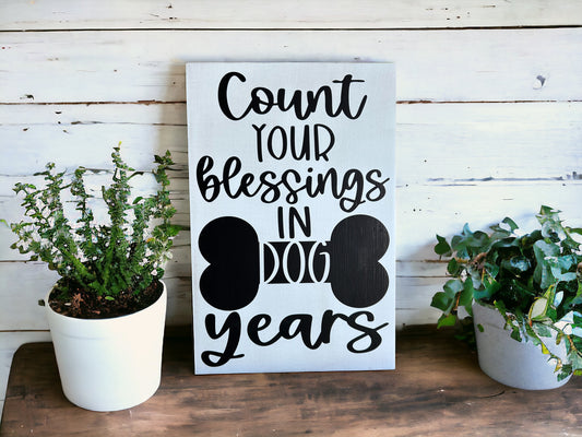Count Your Blessings in Dog Years - Rustic Wood Sign