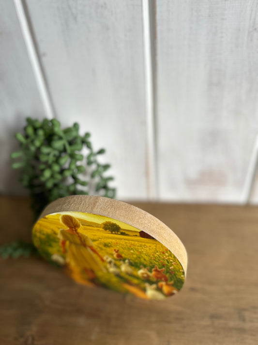 Sunset Bunny Walk - Wood Spring Decor Circle Sign
