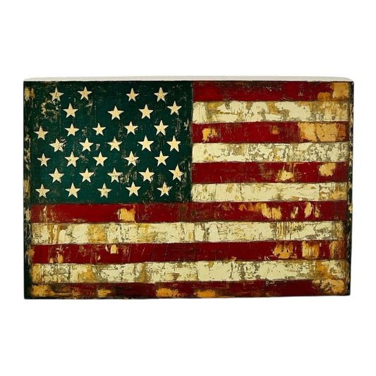 Folk Art American Flag- Patriotic Decor Rustic Wood Sign
