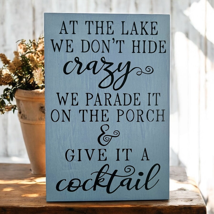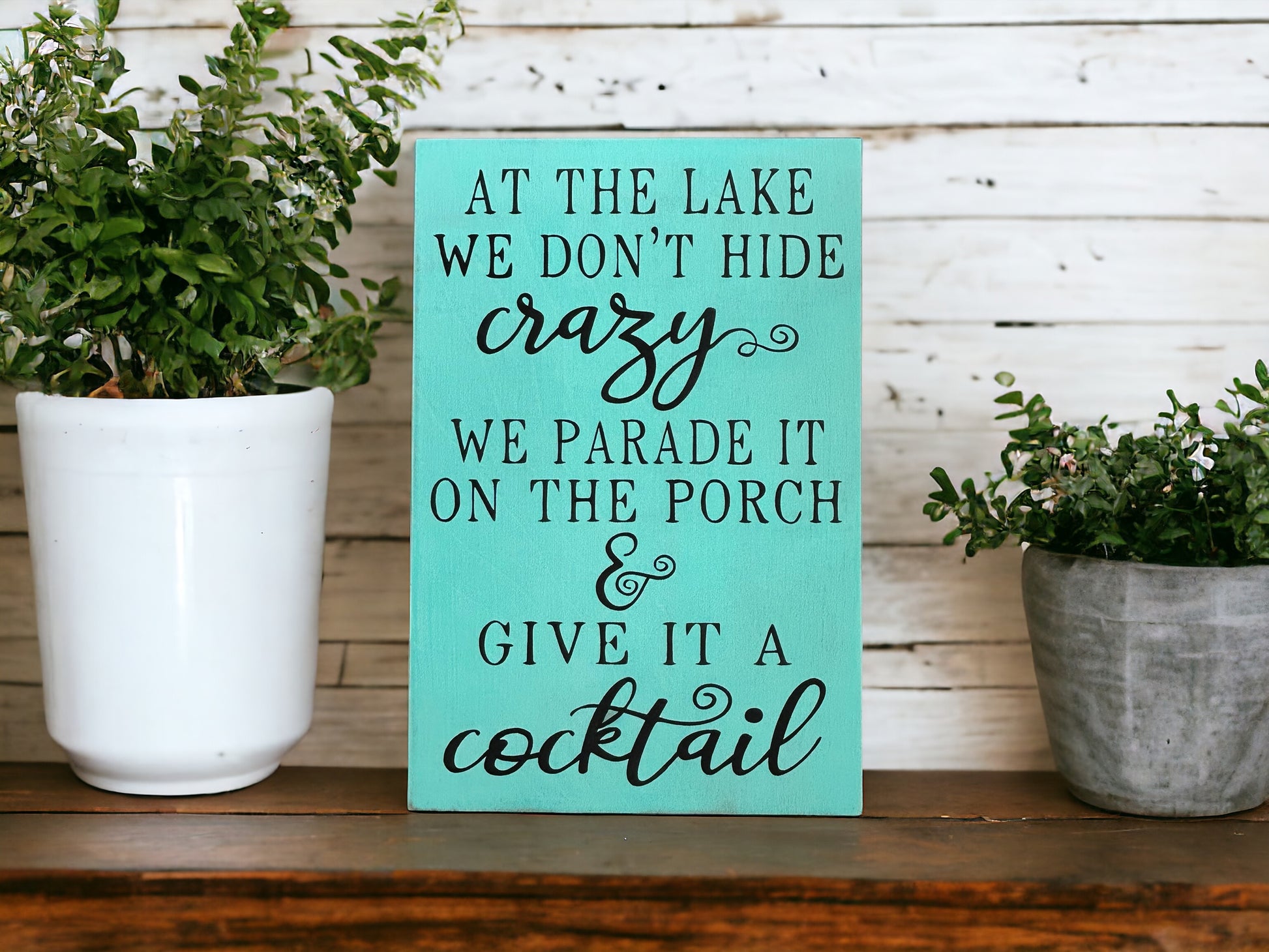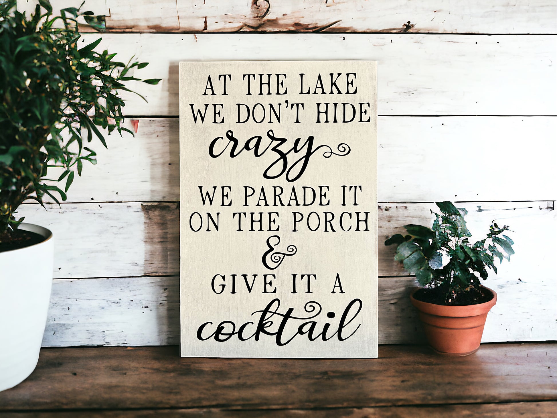 At the Lake We Don’t Hide Crazy -Rustic Wood Funny Lake Sign