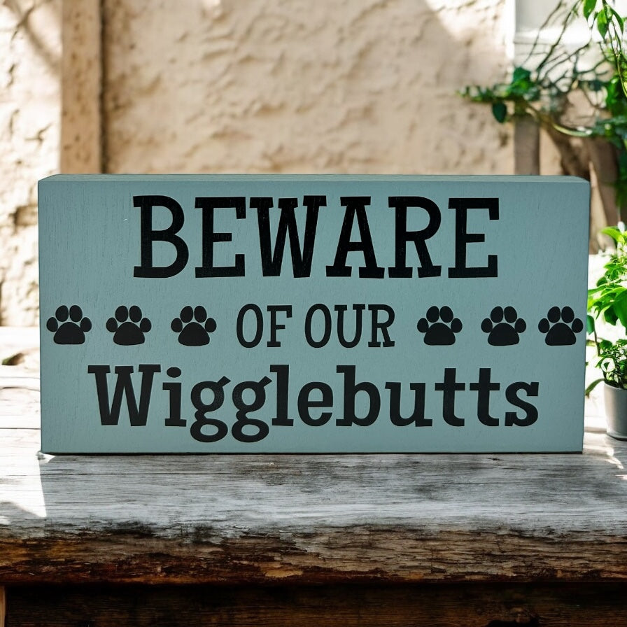 Beware of Our Wigglebutts - Funny Pet Decor Wood Sign