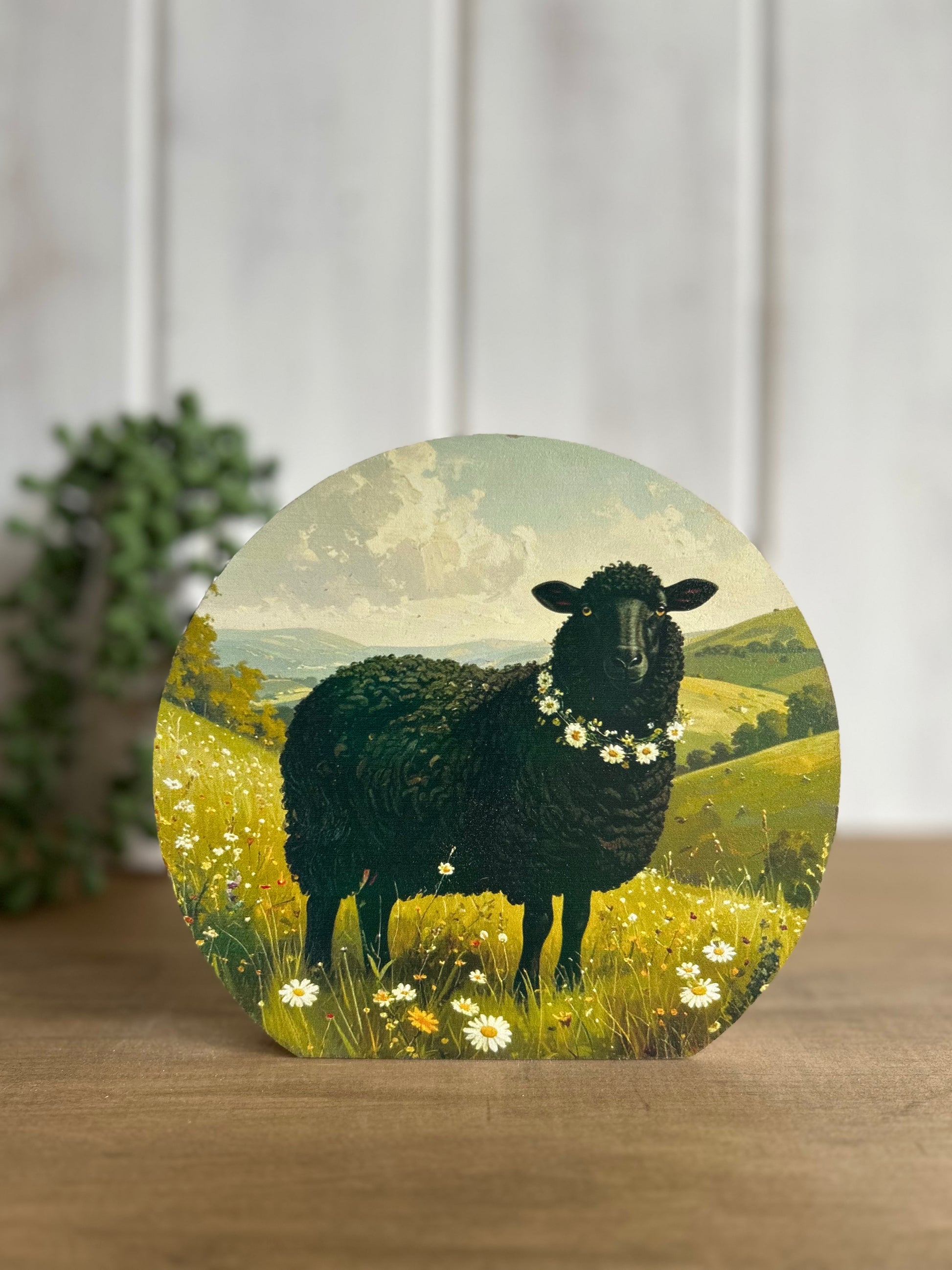 Black Sheep Wearing Flowers - Rustic Spring Decor Wood Sign