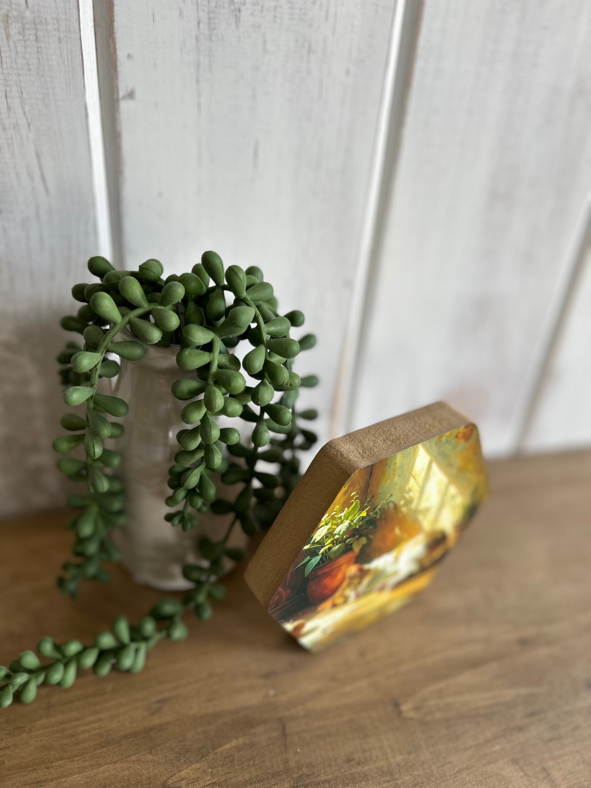 Hexagon shaped sign created on 3/4” MDF. UV printed image on top.