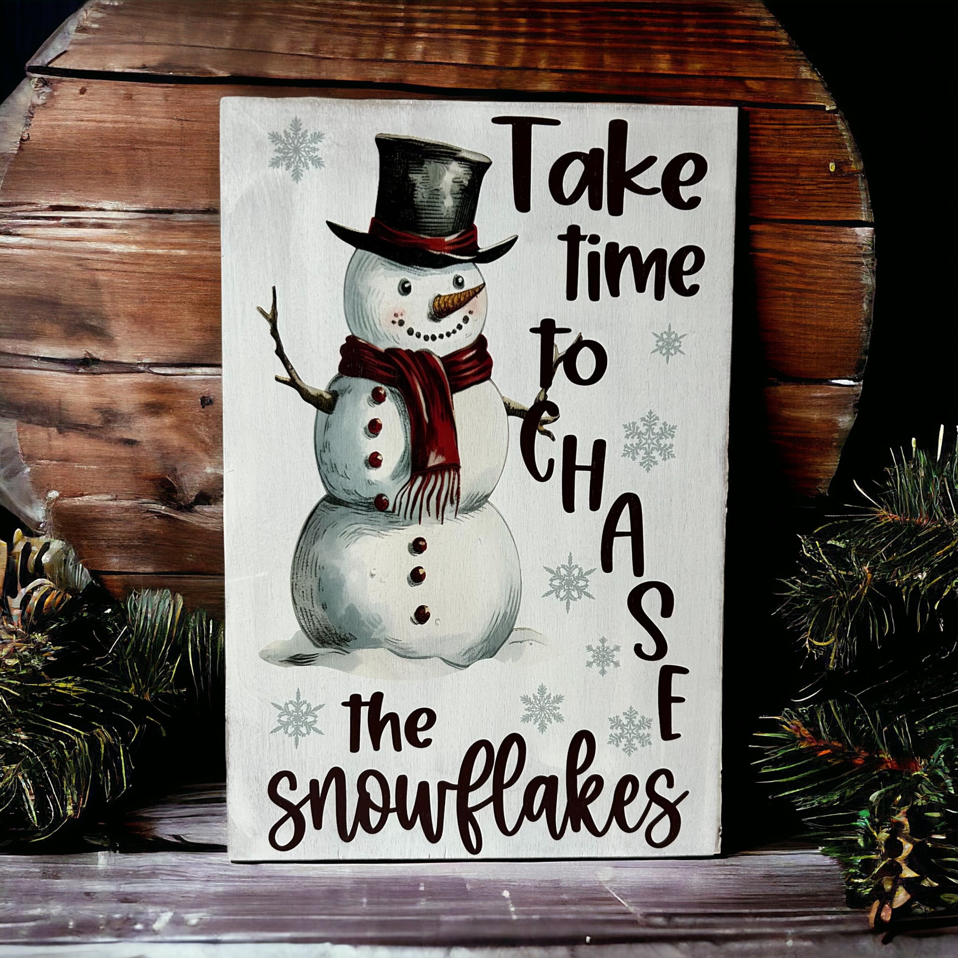 Take Time to Chase the Snowflakes - Rustic Wood Winter Sign