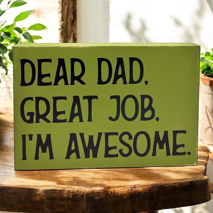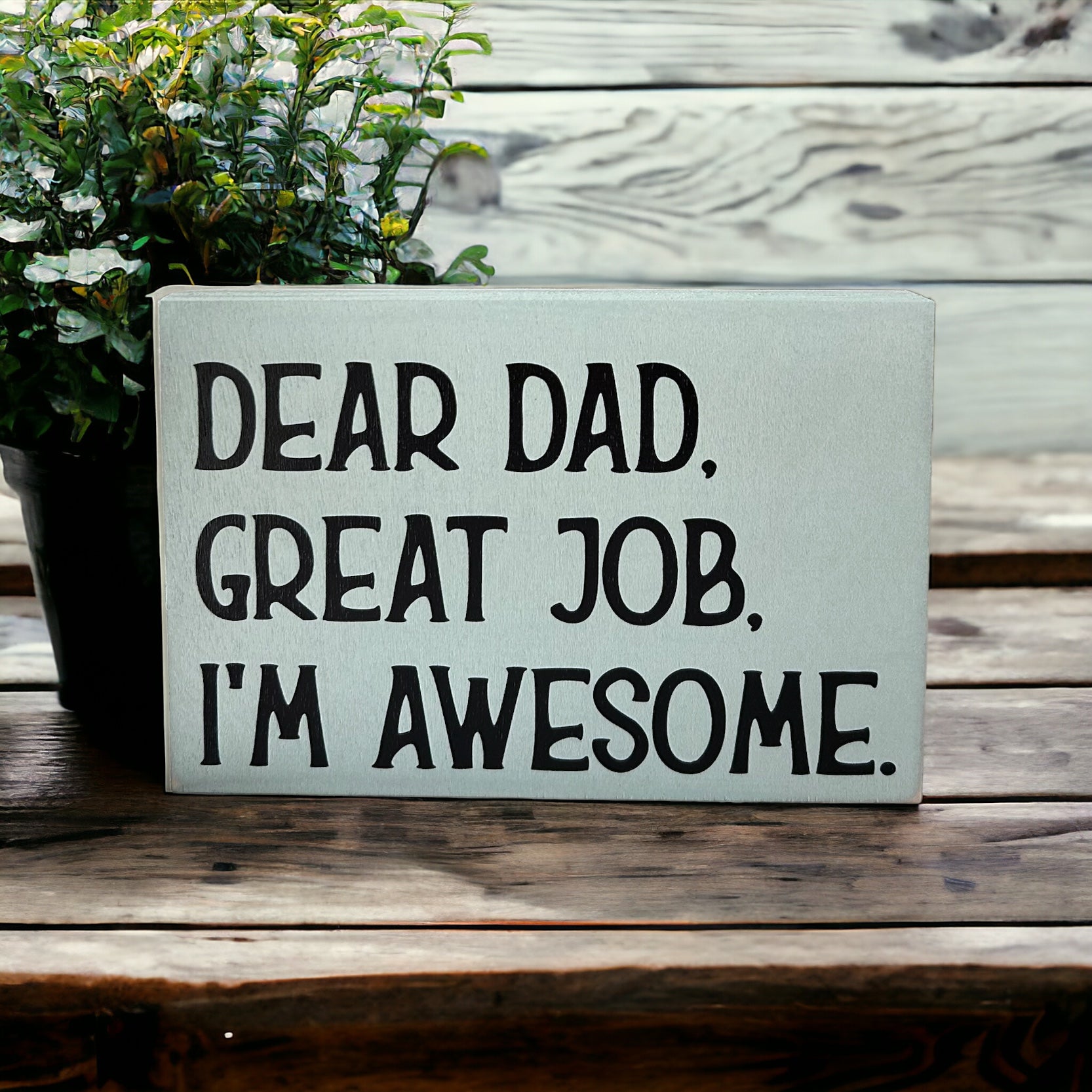 Dear Dad, Great Job, I'm Awesome - Funny Rustic Wood Sign
