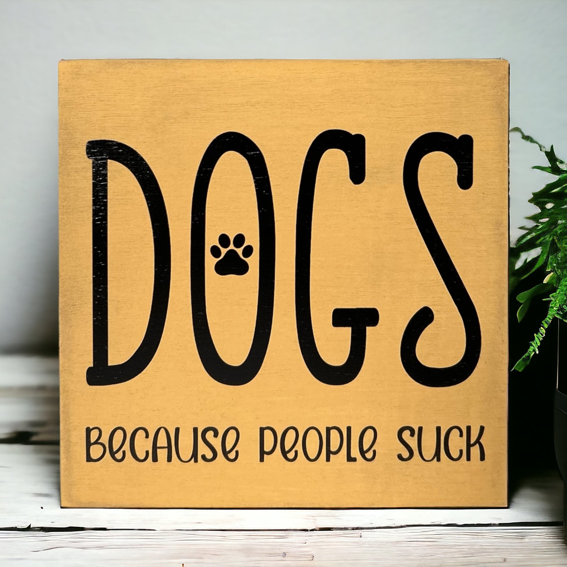 Embrace the undeniable truth with our "Dogs Because People Suck" Funny Wood Sign! Measuring 5 inches by 5 inches, this witty sign is crafted from high-quality hard ply and features a cheeky message that resonates with all dog lovers. Perfect for adding a touch of personality to any room or as a hilarious gift for fellow canine enthusiasts.