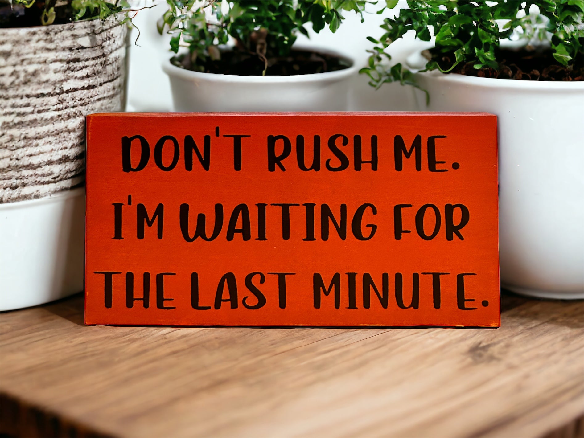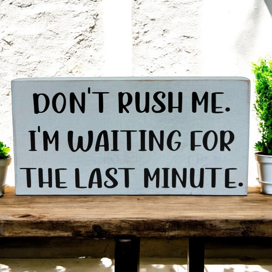 Don't Rush Me - Funny Rustic Wood Shelf Sitter
