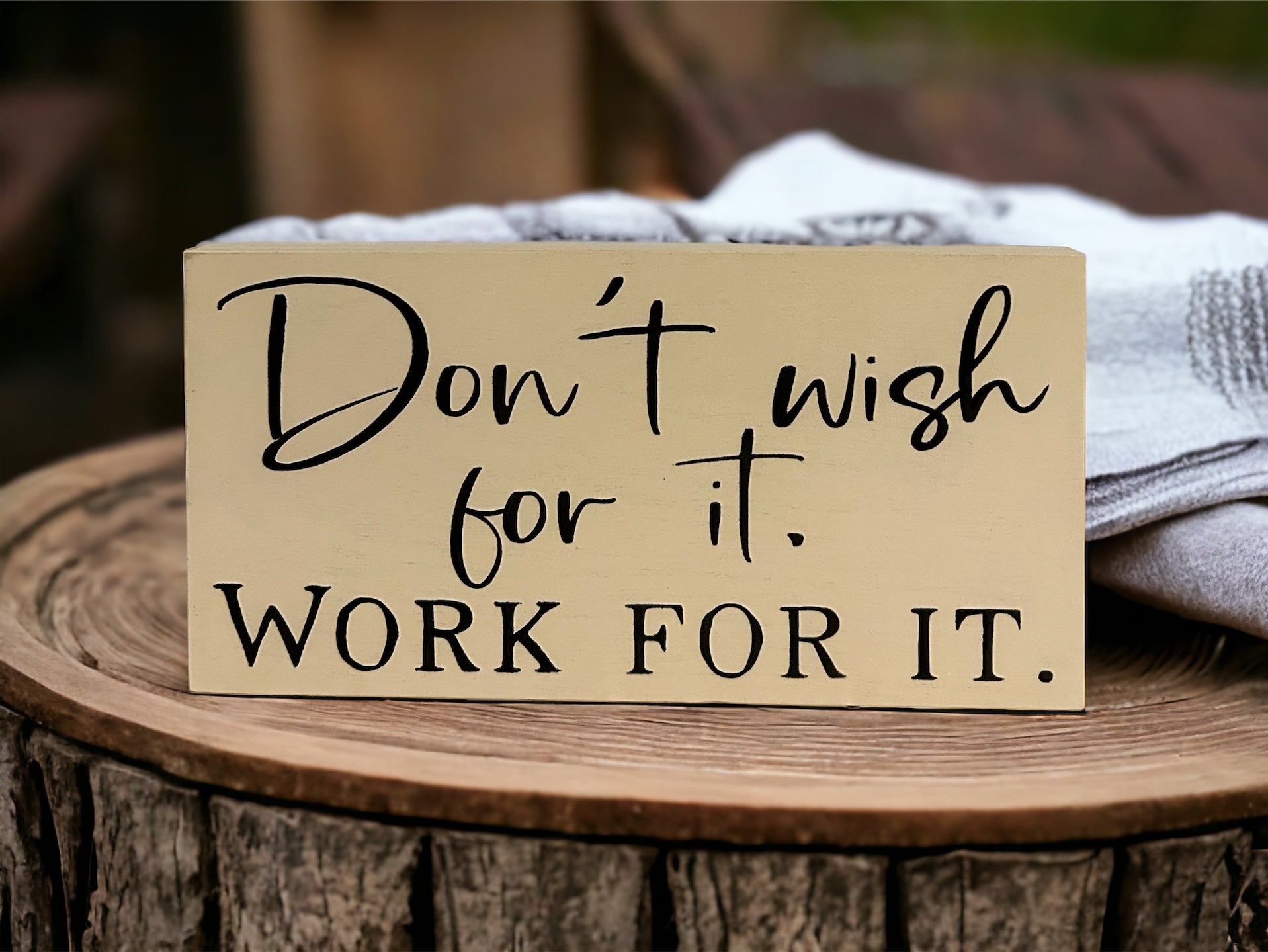 Don't Wish for it, Work for it - Rustic Wood Shelf Sitter