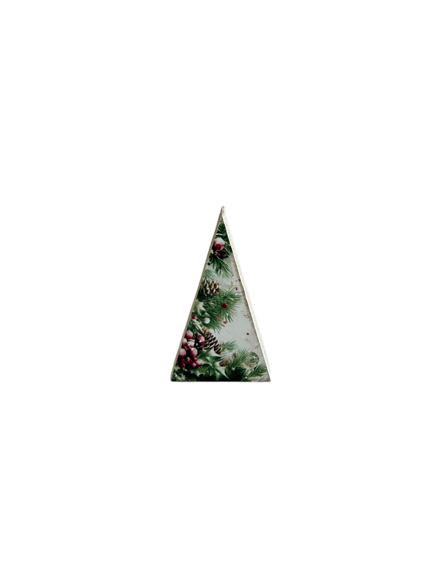 Simple and sweet group of Christmas trees. Neutral fun designs printed on a 3/4”MDF free standing wood tree. Painted Natural Linen on front and sides, sanded and a high quality image printed on the front with UV cured ink.