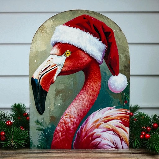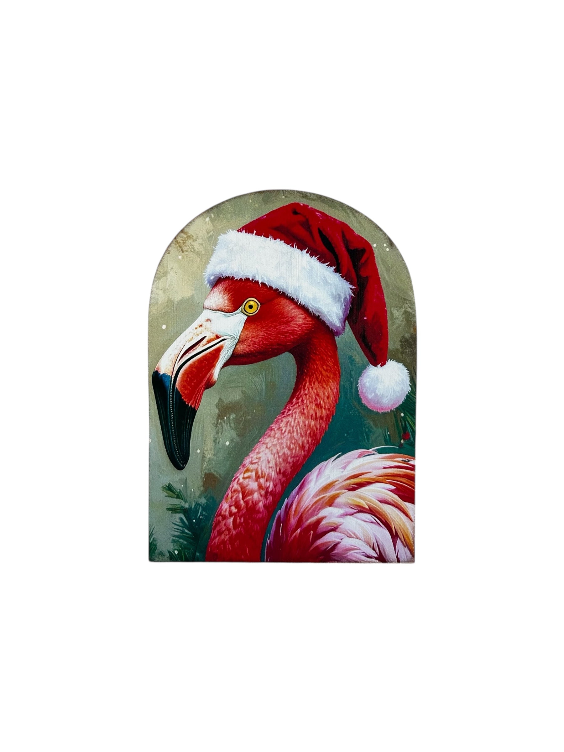 Flamingo in Santa Hat Wood Arch-Christmas 2025 Decor Sitter