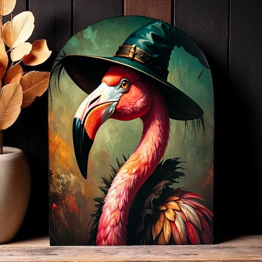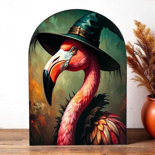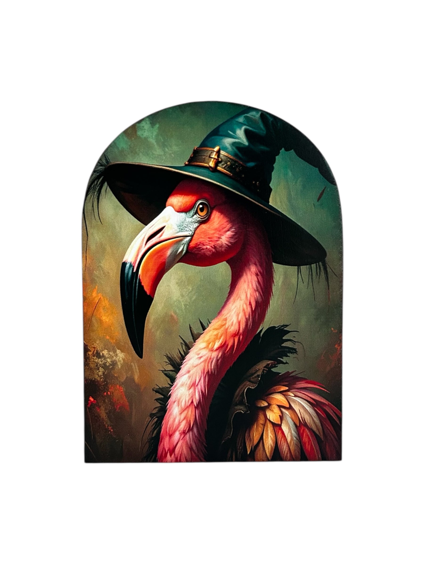 Flamingo Witch Wood Arch-Halloween 2025 Fall Decor Sitter