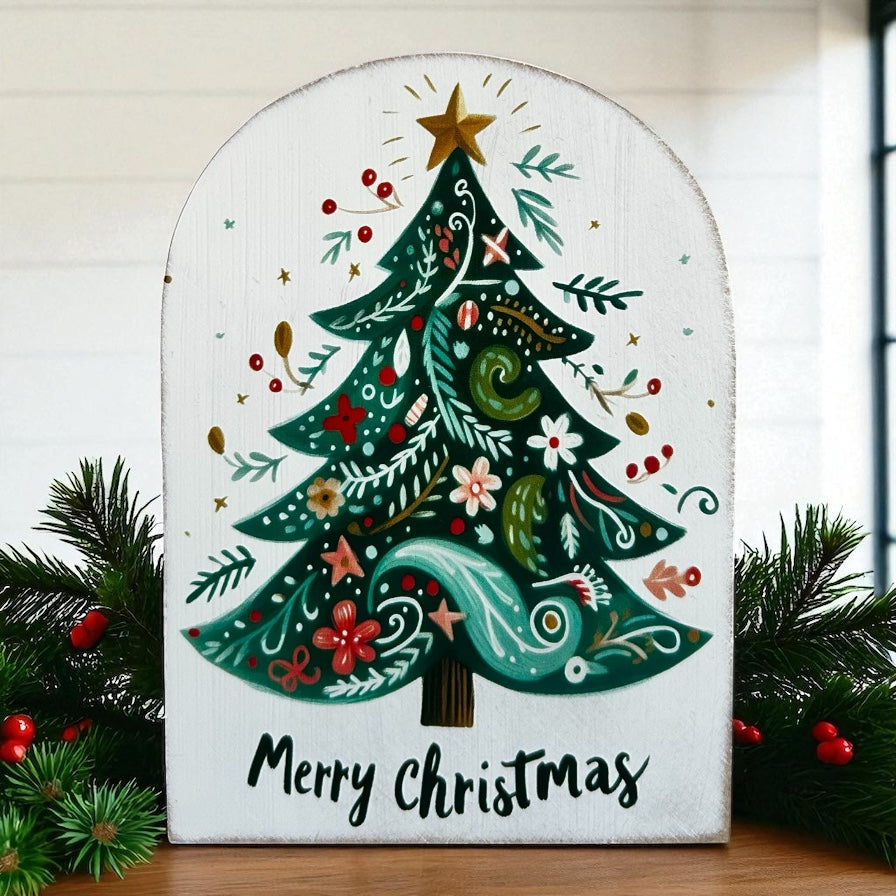 Folk Art Christmas Tree Wood Arch-Christmas 2025 Decor