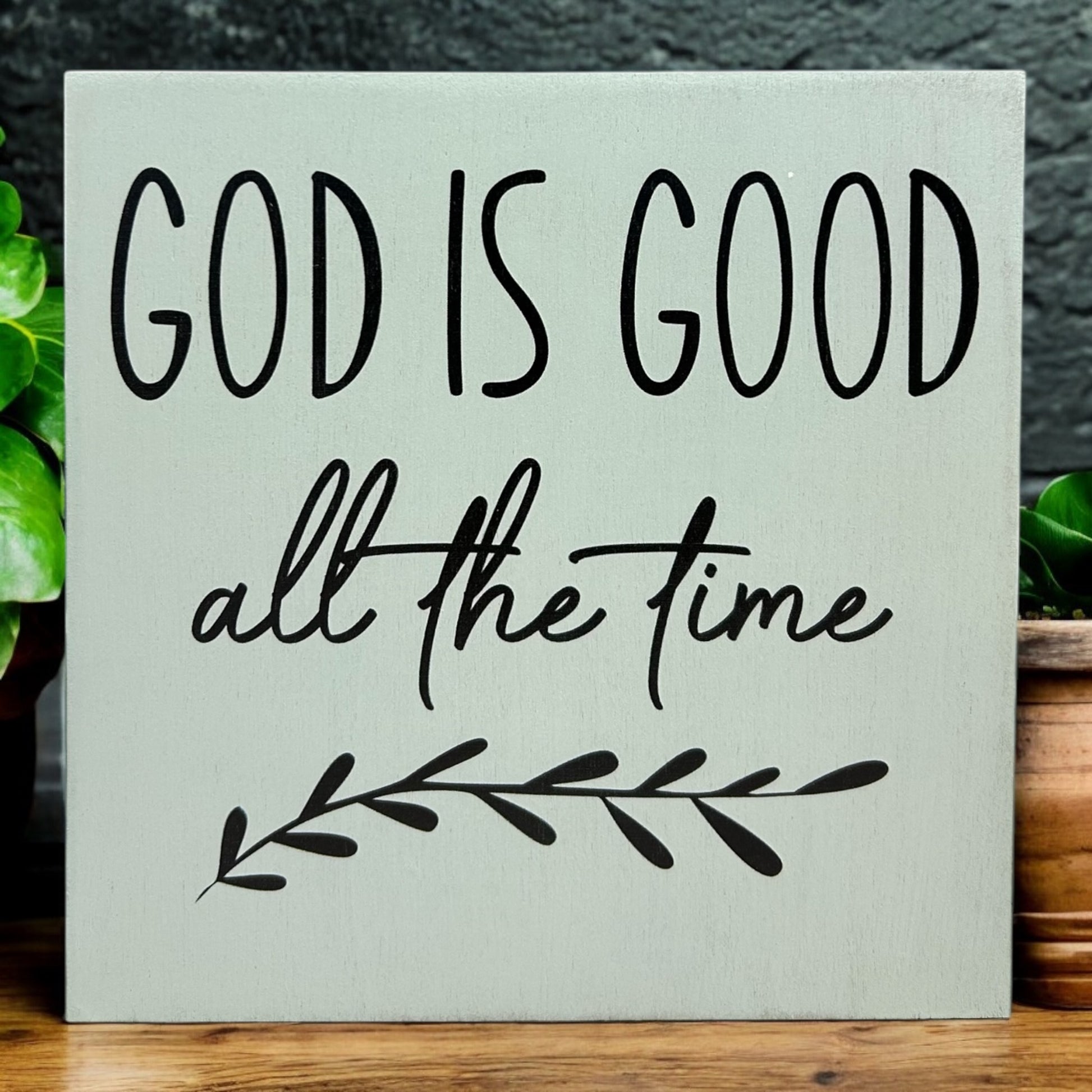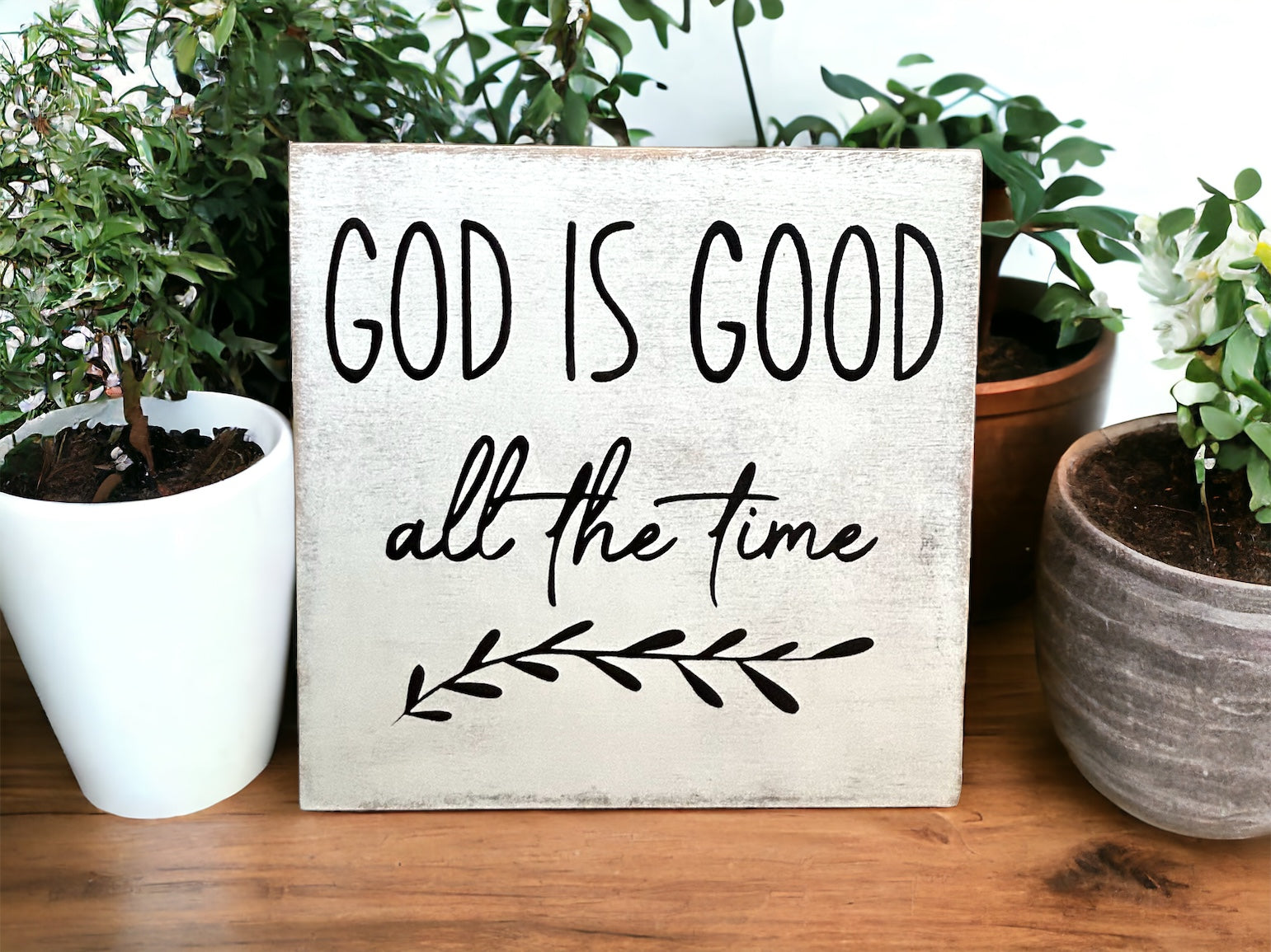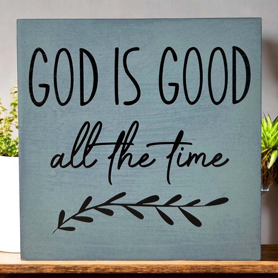 Inspire your customers with our "God is Good All The Time Sign" Wooden Signs, the perfect addition to any home or gift shop. Hand painted and sealed on 3/4” birch wood, these signs offer a timeless expression of faith and positivity. Each sign measures 6x6 inches, making it a versatile and heartfelt piece for shelves, desks, or wall displays. Due to the artistry of hand painting and distressing, no two signs will be exactly the same.