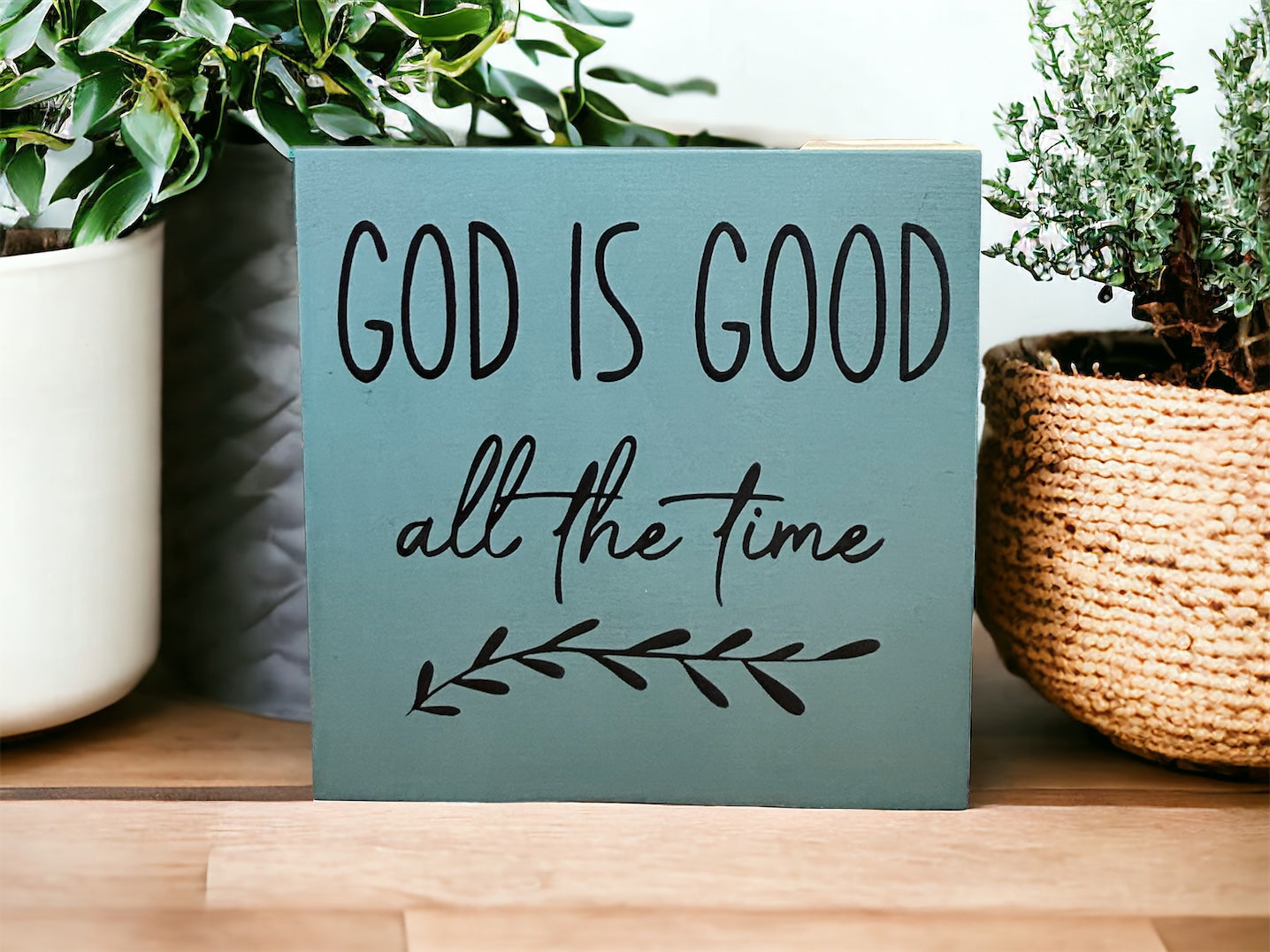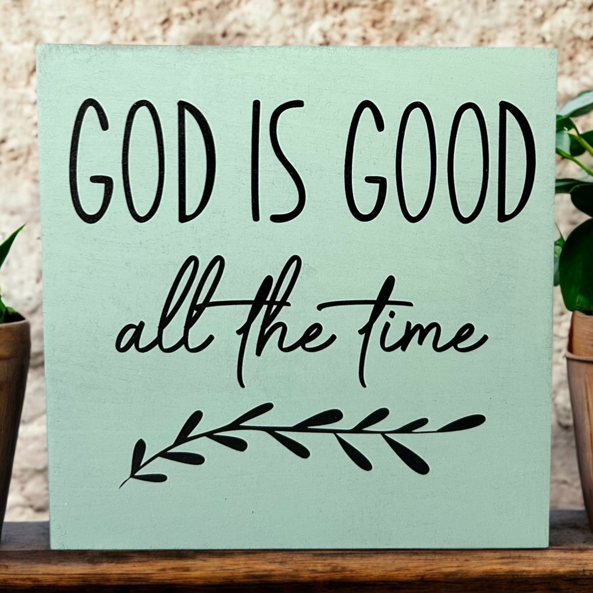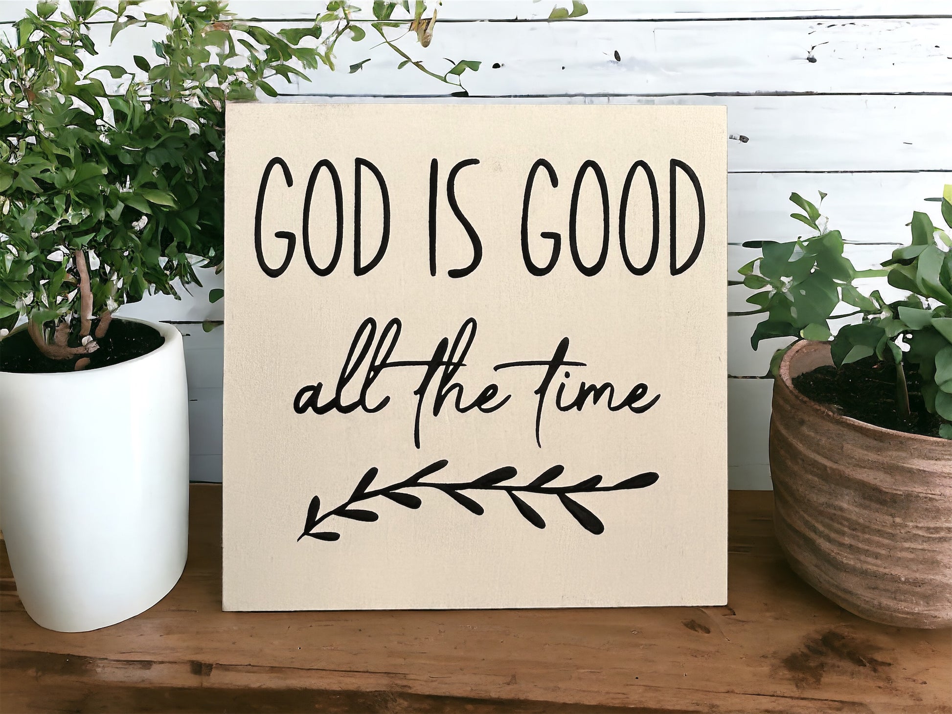 Inspire your customers with our "God is Good All The Time Sign" Wooden Signs, the perfect addition to any home or gift shop. Hand painted and sealed on 3/4” birch wood, these signs offer a timeless expression of faith and positivity. Each sign measures 6x6 inches, making it a versatile and heartfelt piece for shelves, desks, or wall displays. Due to the artistry of hand painting and distressing, no two signs will be exactly the same.