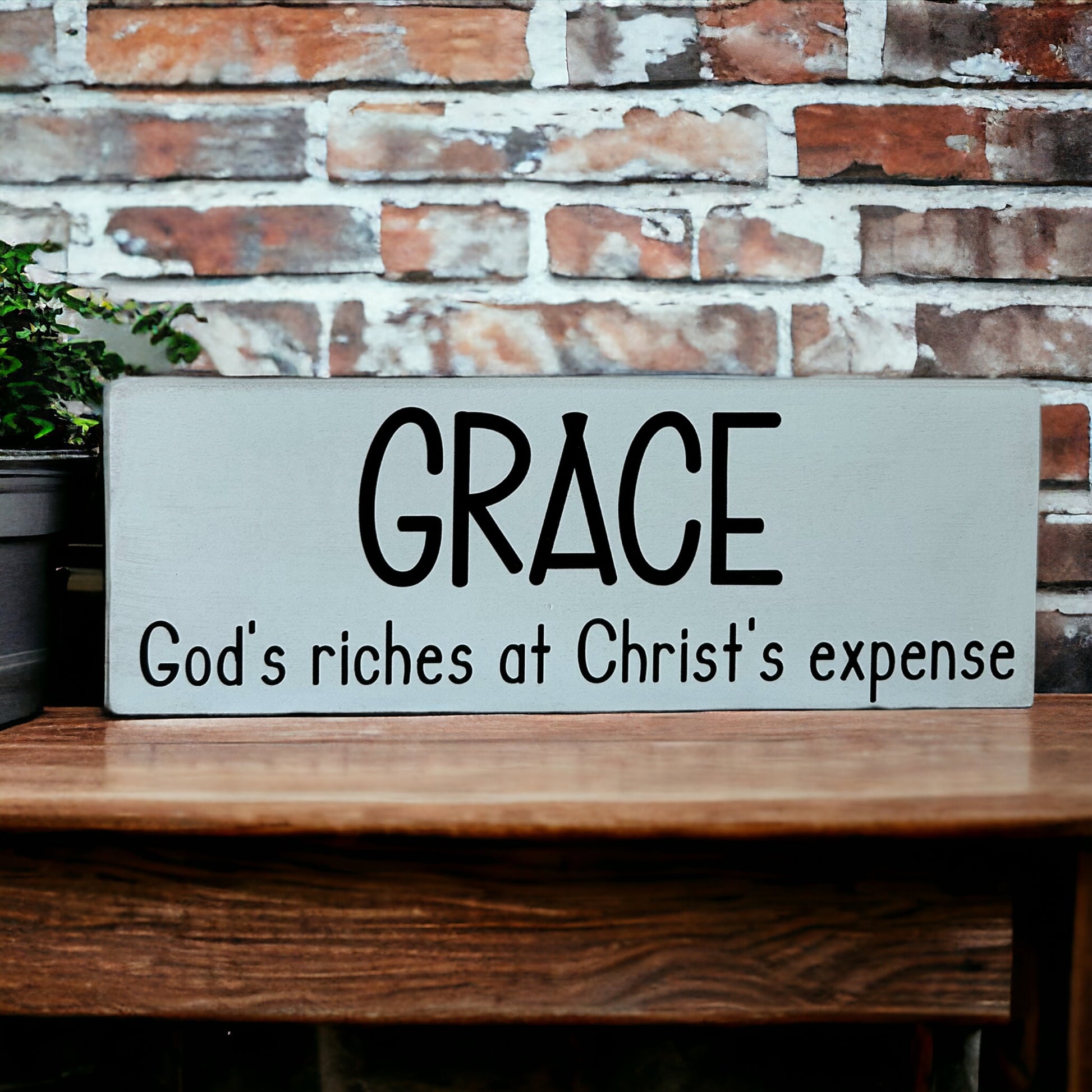 GRACE - God's Riches at Christ's Expense - Rustic Shelf Sign