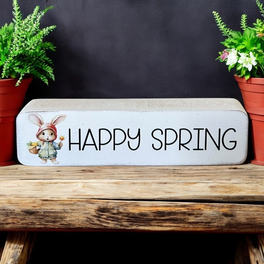 Happy Spring - Rustic Wood Country Spring Decor Bunny Sign