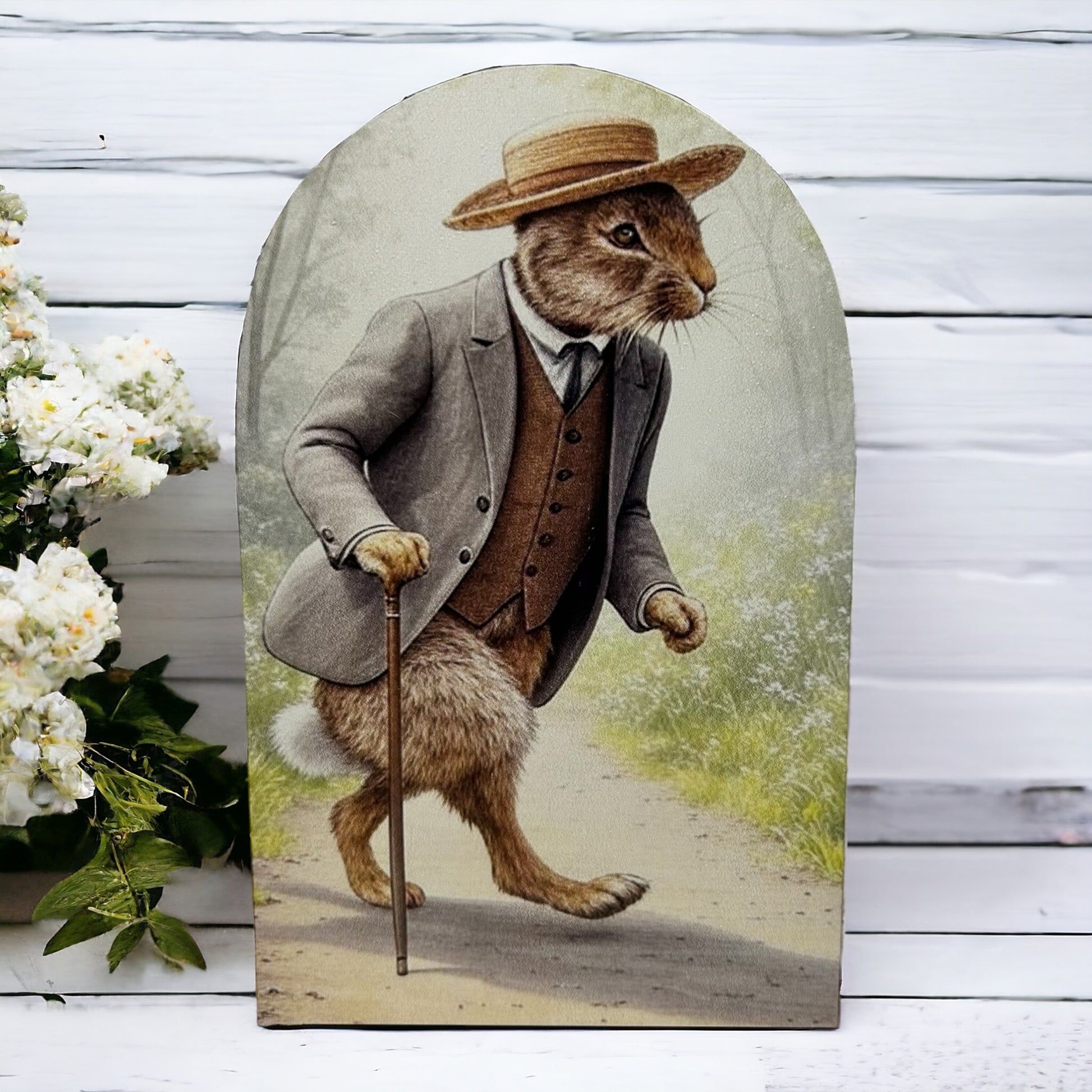 Hare with a Cane - Printed Wood Arch - Spring 2025 Decor
