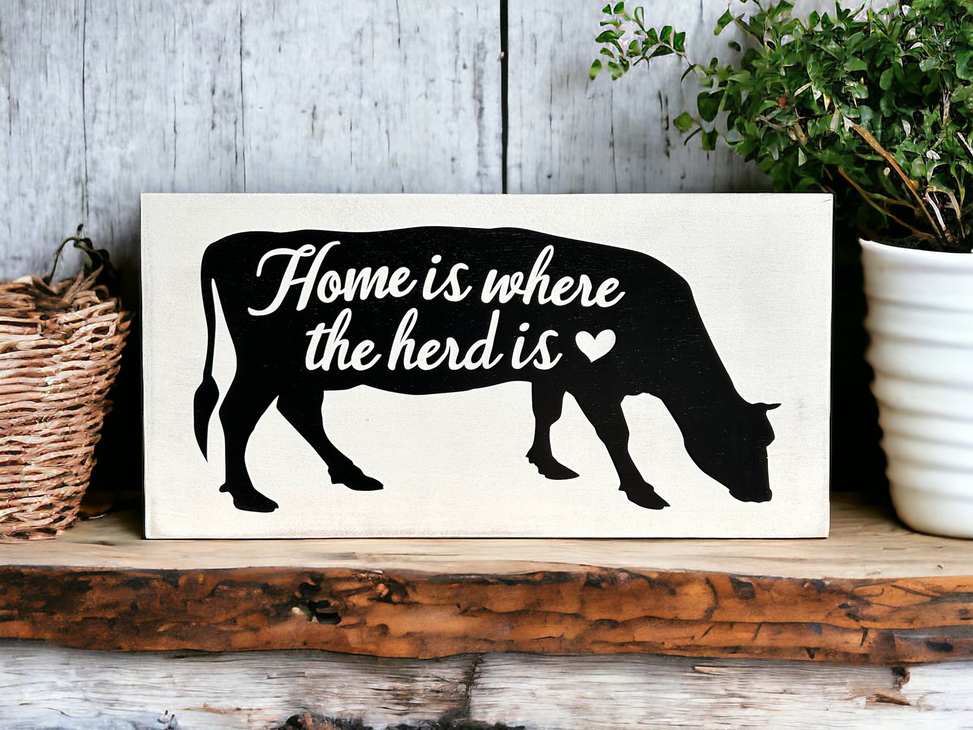 Home is Where the Herd is - Farmhouse Rustic Wood Sign