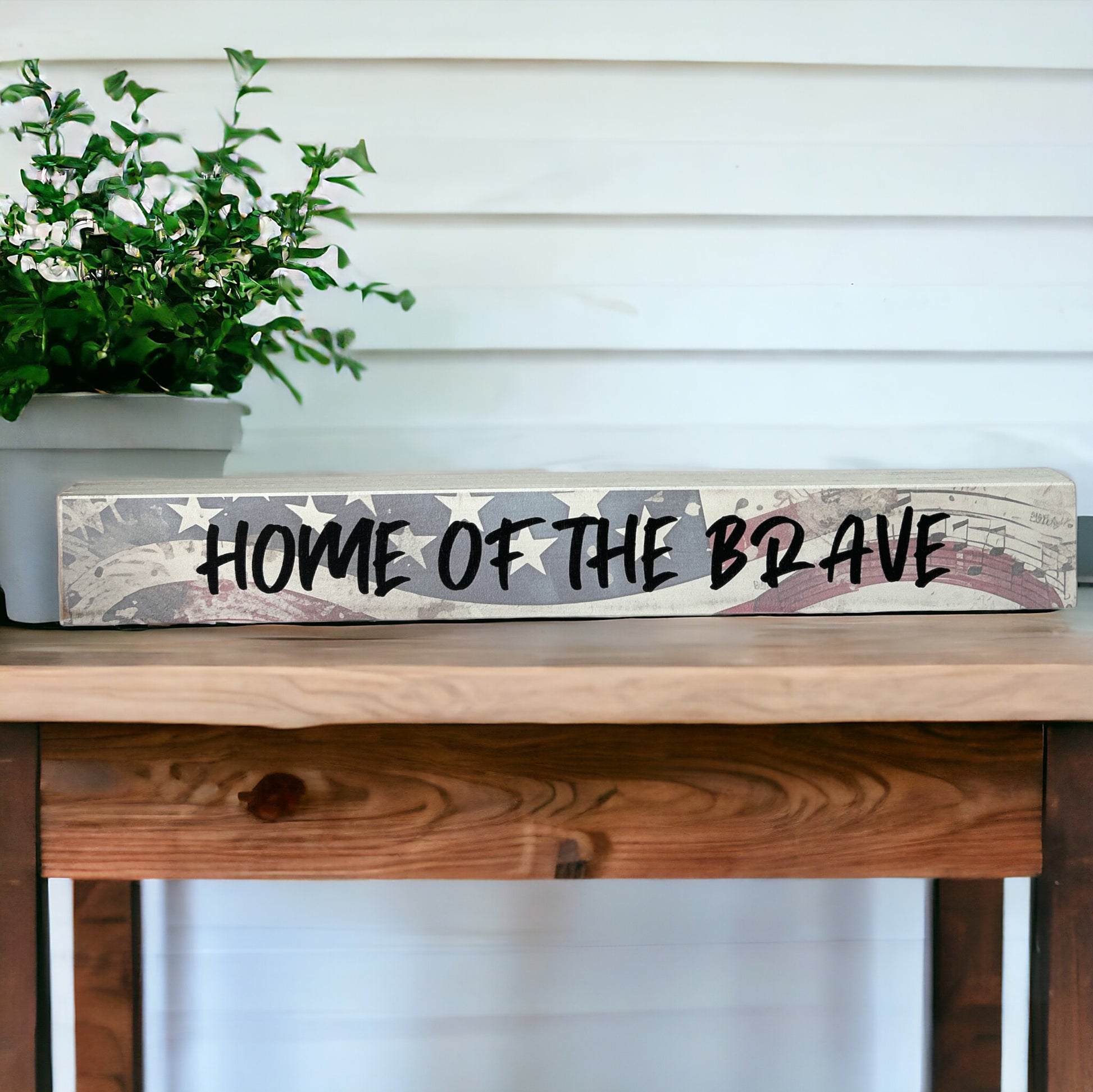 Home of the Brave - Rustic Wood Shelf/Table Patriotic Sign
