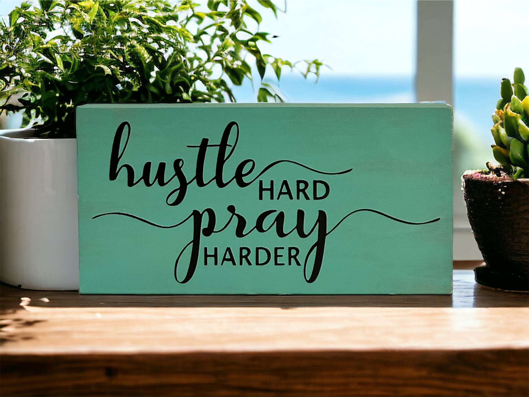 Hustle Hard Pray Harder - Rustic Shelf Sitter