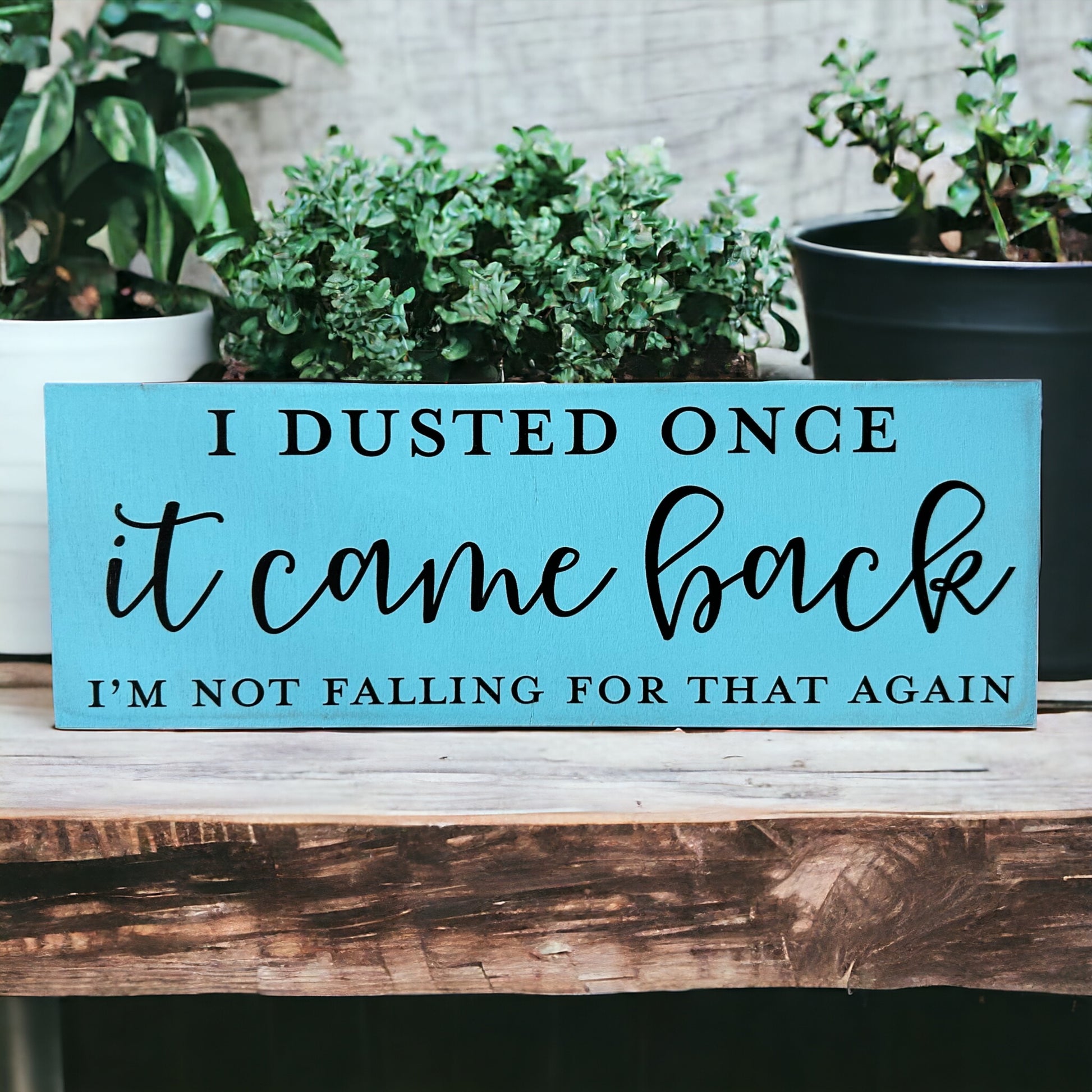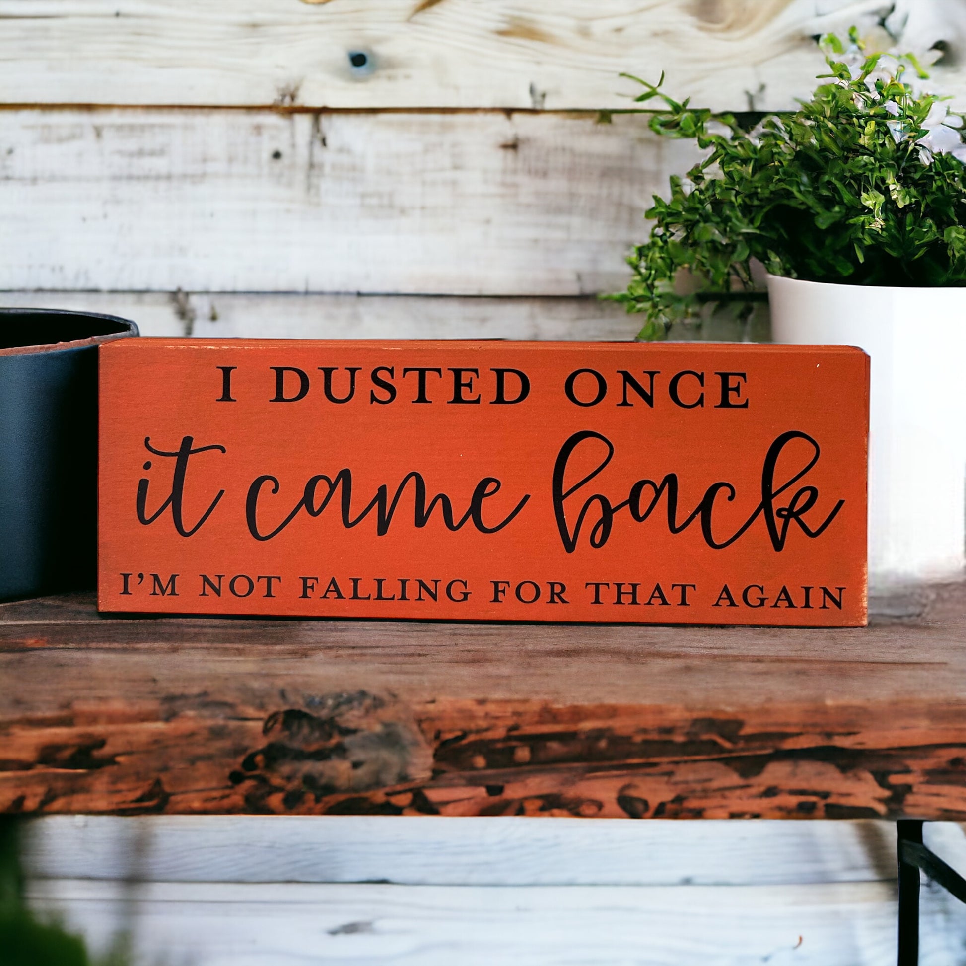 I Dusted Once - Funny Rustic Wood Shelf Sitter