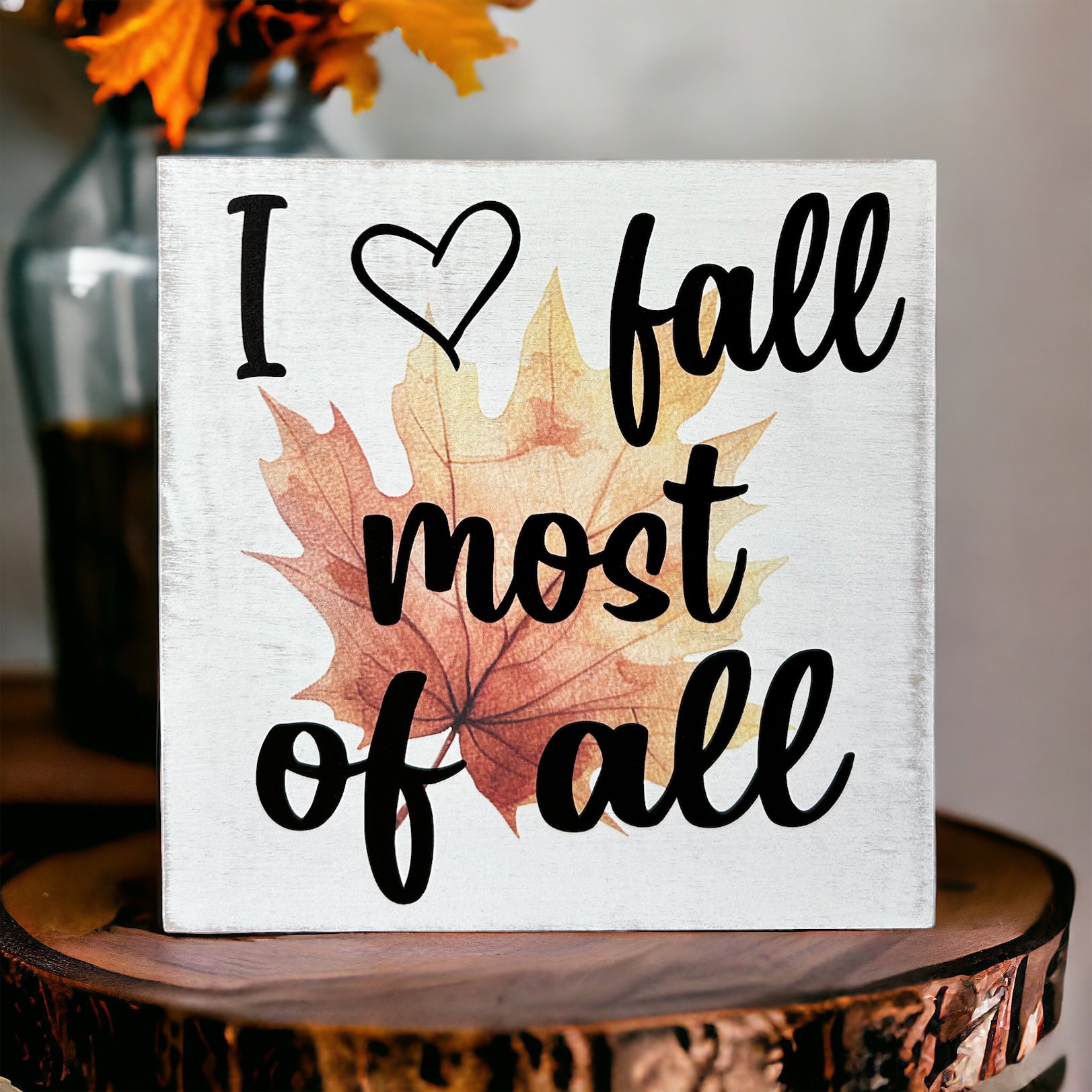 I Love Fall Most of All - Rustic Wood Shelf Sitter