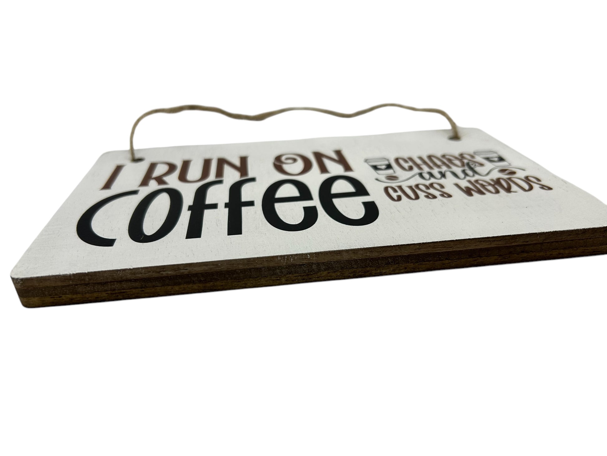 I Run on Coffee - Rustic Funny Coffee Themed Wood Sign