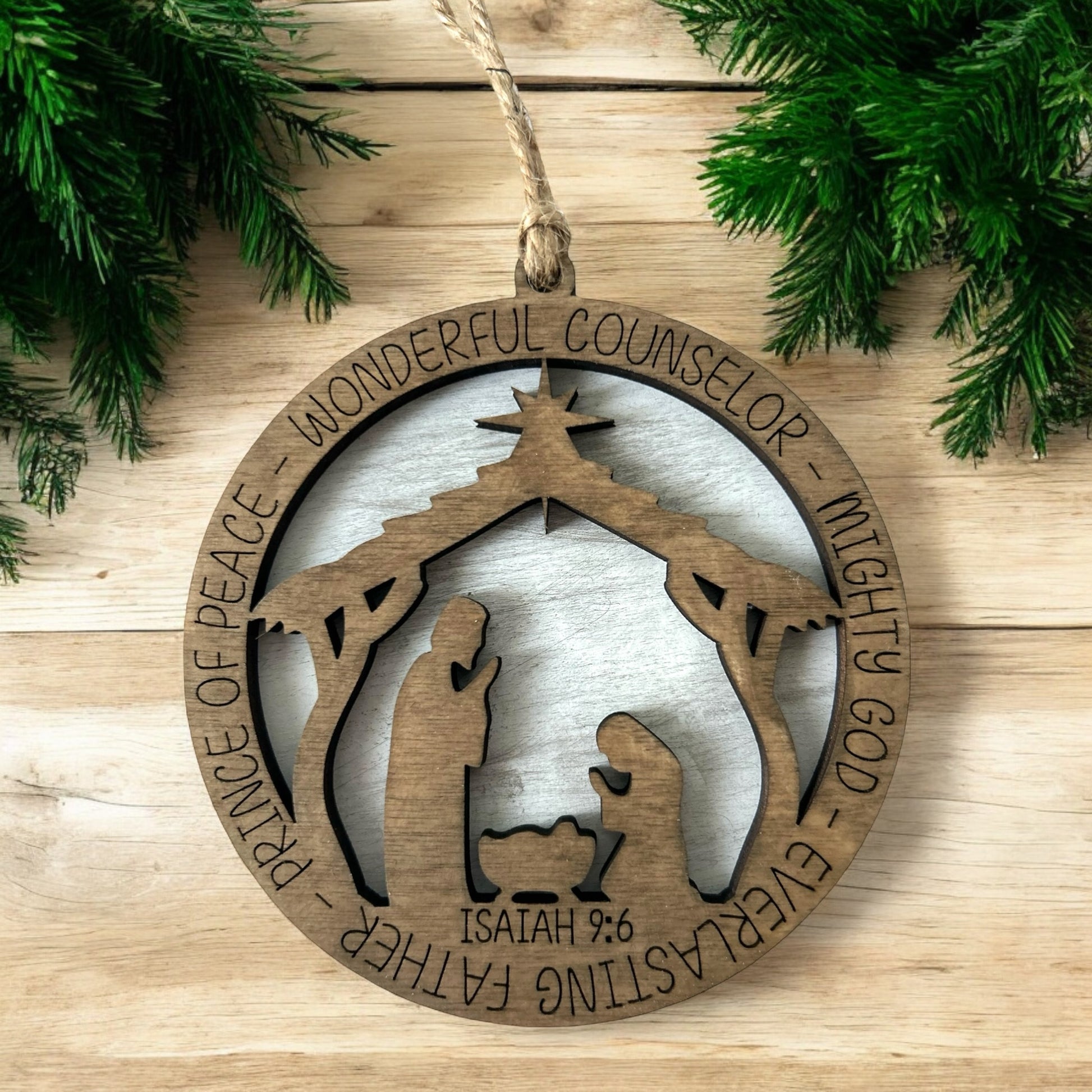 Isaiah 9:16 Nativity Wood Christmas Ornament
