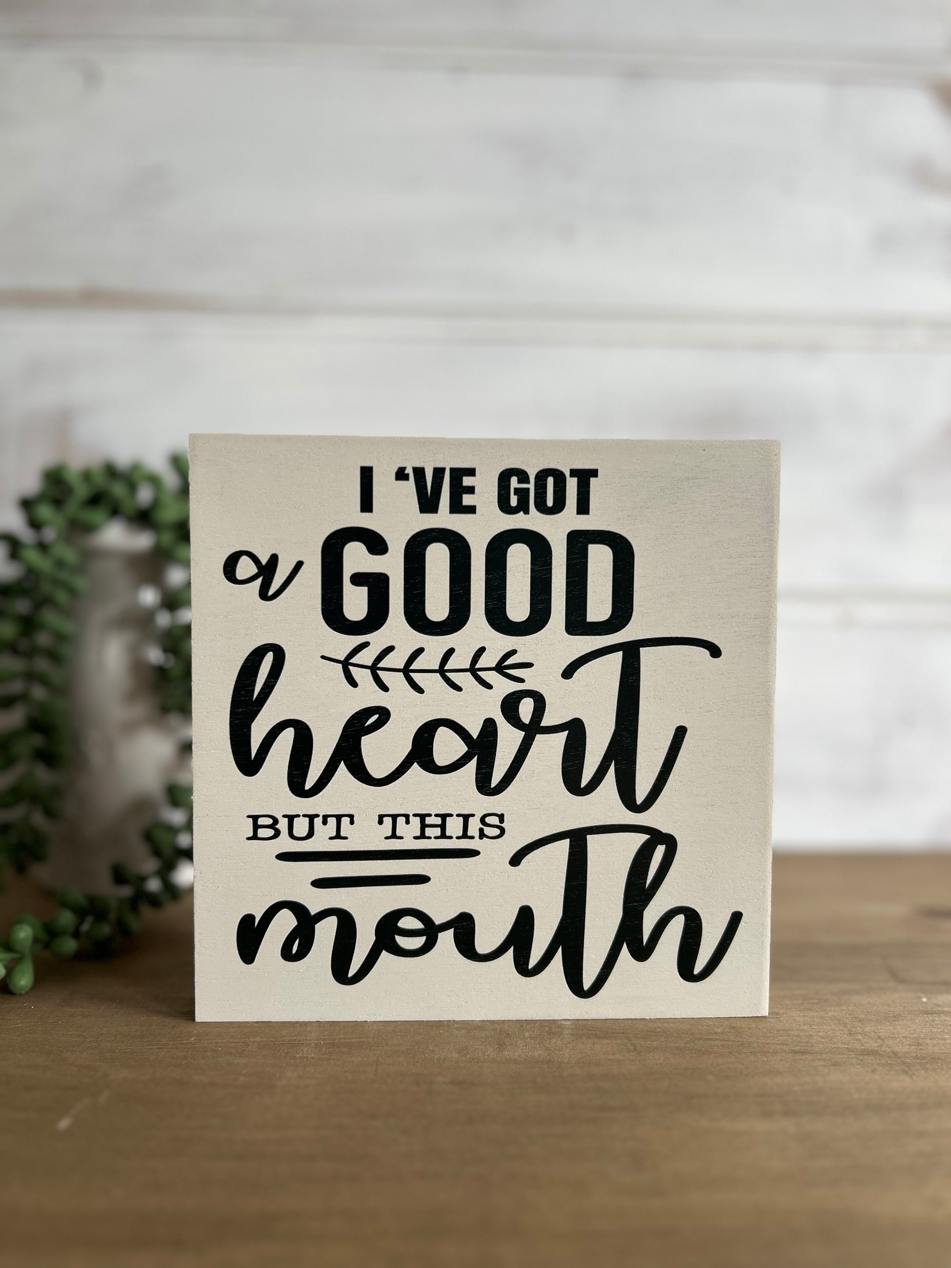 I've Got a Good Heart But This Mouth- Rustic Funny Wood Sign